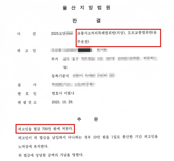 0.097% 음주운전 벌금!! 페이지 정보 작성자 법률사무소 댓글 0건 조회 378회 작성일 25-11-10 17:03 본문 혈중알코올농도 0.097%의 술에 취한 상태로 운전하다가 중앙선을 침범하여 교통사고를 내었고, 피해자에게 2주간의 상해를 입힌 사건을 맡았습니다. 수사과정에서 피해자와 원만히 합의하였고, 숙취운전이었던 점, 상해의 정도가 경미했던 점, 동종 범죄전력과 이 사건 범행의 시간적 간격이 상당히 있었던 점, 그리고 성실한 사회구성원인 점 등을 재판부에 호소하여,다행히 벌금 700만원의 선처를 받을 수 있었습니다. 목록 이전글[성공사례] 운전자폭행 및 공무집행방해 집행유예 26.03.30 다음글스토킹 무죄 판결! 25.08.21