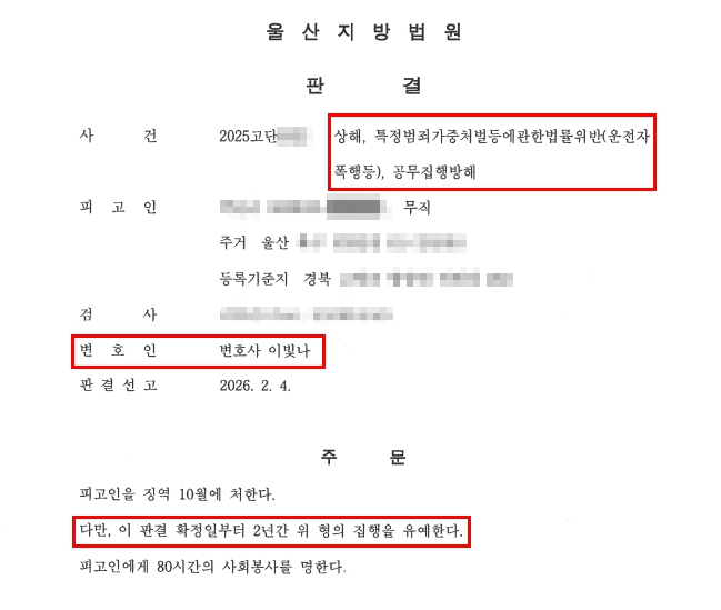 [성공사례] 운전자폭행 및 공무집행방해 집행유예